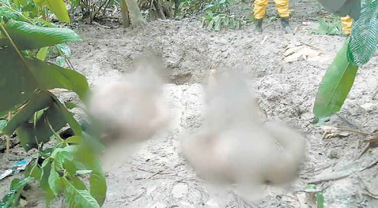 Dois corpos masculinos, de identidades ainda não confirmadas, foram encontrados, na tarde deste domingo (7), na Av. Manaus 2000, no bairro Japiim II, zona Sul de Manaus. Eles estavam em uma cova no meio da área de mata, atrás do prédio da Secretaria de Educação e Qualidade de Ensino do Amazonas (Seduc), na rua Waldomiro Souza. Segundo o Comandante de Socorro do Corpo de Bombeiros Militar do Amazonas (CBMAM), tenente Ruiz, uma equipe foi acionada para fazer o resgate dos corpos, após policiais militares encontrarem o local. “Quando descemos, uma área de difícil acesso, com igarapés, encontramos dois locais. Um com machados, facões e uma tenta com muito sangue e outro, possivelmente escavado, com uma mão lá.”, afirma.