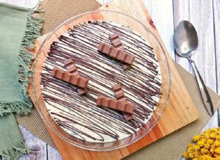 1 e 1/2 caixinha de leite condensado, 3/4 xícara de chá de leite em pó, 1 e 1/2 caixinha de creme de leite, 1 e 1/2 caixinha de chantilly bem gelado, 1 e 1/2 xícara de chá de chocolate meio amargo picadinho, 40 gramas de chocolate meio amargo derretido para decorar, Chocolate Kinder ou outro para decorar
