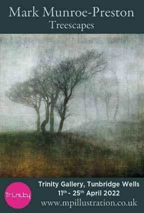 Landscape artist Mark Munroe-Preston's striking treescape, entitled 'N51.0222 E0.0779', part of his Through the Enchanted Groves exhibition which comes to Trinity Gallery in Tunbridge Wells, 11th to 25th April. In May Mark is taking part in Artist Open Houses and will also be at Sussex Art Fair, Goodwood, and Talented Art Fair, Brighton, in July –see pages 9, 13, 33 & 35 for more details of these events. www.mpillustration.co.uk