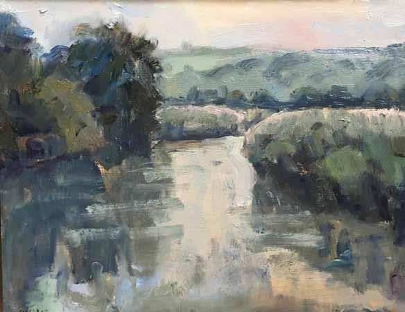 Frances Knight, Cloudy Morning River Arun, oil on Board 20x25cm