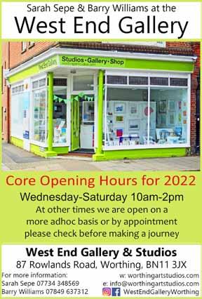 Otherwise we are open daily by appointment with drop-in Sundays 3.00 to 5.30pm from April to November. You’ll find the studio down a little lane at 1 The Strand, Ferring BN12 5QX. There is free parking available and we are wheelchair friendly.