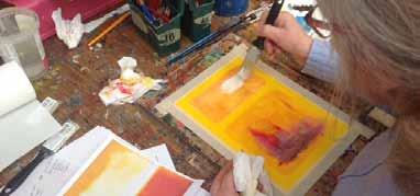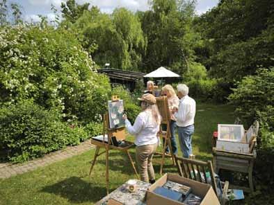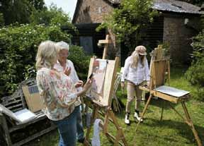We look forward to meeting you – at Jessops Farm Studios, Tonbridge Road, Edenbridge, Kent TN8 7AU. left: at Jessops Farm Studios – painting workshop en plein air; bottom left: visitors admire artwork