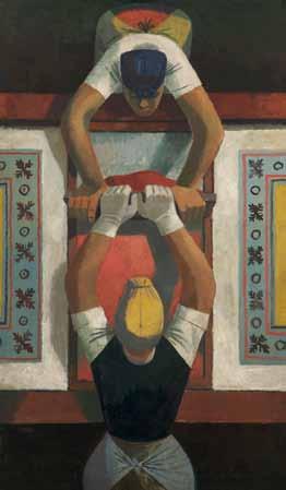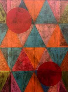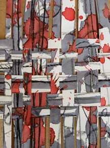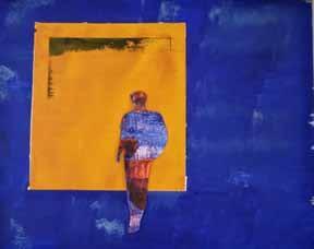 above: Delia Lindon Spence, Figure against blue background; left: Gill Dixon, Abstract paper weave
