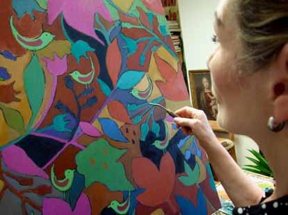 left: Catriona Millar working on her latest painting