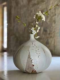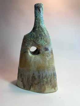 clockwise from top: Maria Russell, The Spaces We Fill; Lorraine Singer, Shades of Stone Drop Vessel; Scarlett Woodman, Copper Light; Jude Askey-Brown, French Geranium; Hildegard Pax, Teardrop Dazzle Necklace; Jane Richardson, Wren on gardener's fork