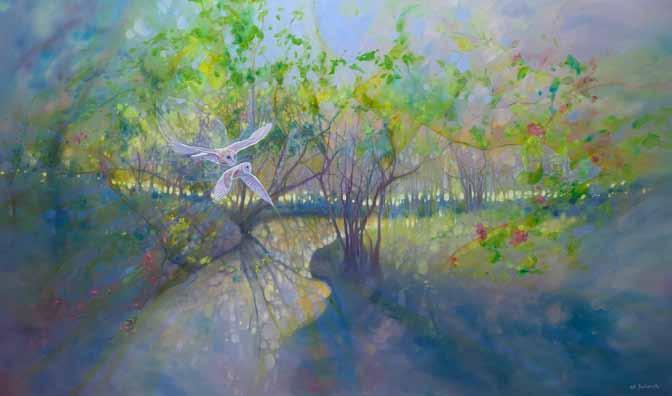 Very soon the Open Studios Art Trail in Chichester and its surrounding villages will be drawing in art lovers from far and wide. Time to visit an amazing light barn within the charming hamlet of Flansham, PO22 8NJ. It’s a no-through road so many may never have heard of Flansham. But here’s your chance to discover and gaze at paintings of Land, Sea and Sky; paintings of moods but never sad moods. I paint soft, blended oils, and colourful contemporary