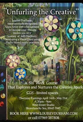 Louise Durham, internationally recognised glass artist invites you on a journey of self discovery developing a visual diary using playful mixed media practices.