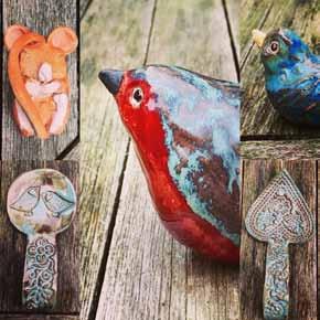 Make a Bird! This workshop is about learning the hand building techniques needed to create ceramic clay birds. The first session is for making and second is for glazing/decorating. Each workshop is a threehour session. No need to bring anything, clay, glaze, inspiration and cups of tea are included. £60 for two sessions, materials and firings included.
