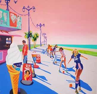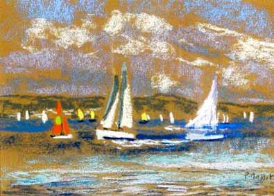 crossings and fairgrounds, capturing colour, movement, changing light and weather. Unique oil on paper monotypes, paintings, drawings, ceramic sculpture and cards are for sale.