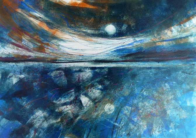 Exploring that creative space between abstraction and representation by drawing in situ, her works invite you to share her expressive interpretation of the local South Downs landscape, Solent coast, sea