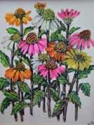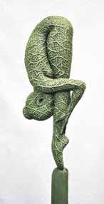Lorraine’s use of form is usually traceable to flora and fauna. Currently her studies of cacti and succulents, their statuesque shapes, fantastic flowers and deceptive surfaces lure her into layering metals and stones to capture something of their individuality.