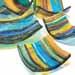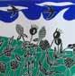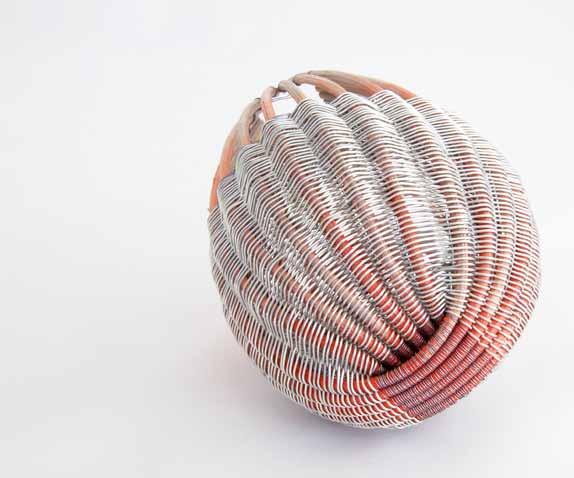 Dominated by the use and perception of colour, Lorraine uses traditional print-making techniques on aluminium, to produce unique raw material. Her interest in old textiles and their history influences the surface designs and textures, and she enjoys the challenge of momentarily deceiving the eye into wondering if the material is cold, hard metal, or soft pliable textile transformed into an unyielding shape. She experiments with a variety of printing methods, from naïve block prints, etched and cut lino prints, and sharp digitally imaged screen prints.