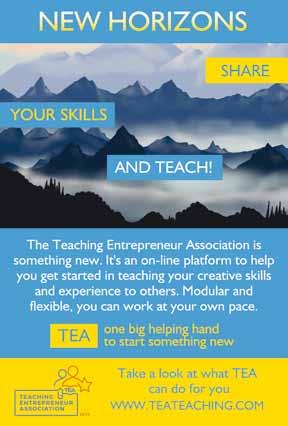 Step up the Teaching Entrepreneurs’ Association, or TEA for short! An on-line membership platform that offers modules called Teatorials, it consists of a video, workbook and quiz on different aspects of teaching adults. You can learn at your own pace, in your own space, picking and mixing modules to meet your needs. You can build the modules towards the Award in Education and Training, a nationally recognised entry level qualification for teaching adults, which helps to access adult and further education colleges. There’s also a virtual staff room to chat and network, sharing your successes and challenges. We’ve even got our own Agony Aunt to troubleshoot your teaching problems.