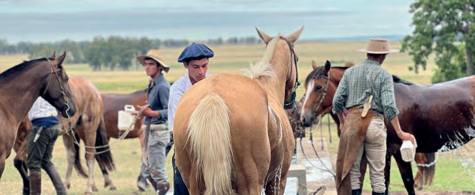 On our farms in Argentina and Uruguay, we employ several teams of gauchos, who play a central role in caring for our cattle and sheep. Gauchos are skilled horsemen and livestock herders, often closely connected to their horses who they care for and depend on. In respect for their horses, the gauchos style them with personalised harnesses.