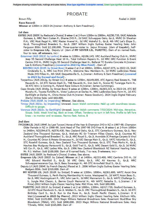 PROBATE (AUS) 2020 Brown Filly by Impending out of Estee