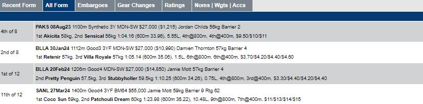 Summary: 8-1:2:0 Prizemoney: $32,705