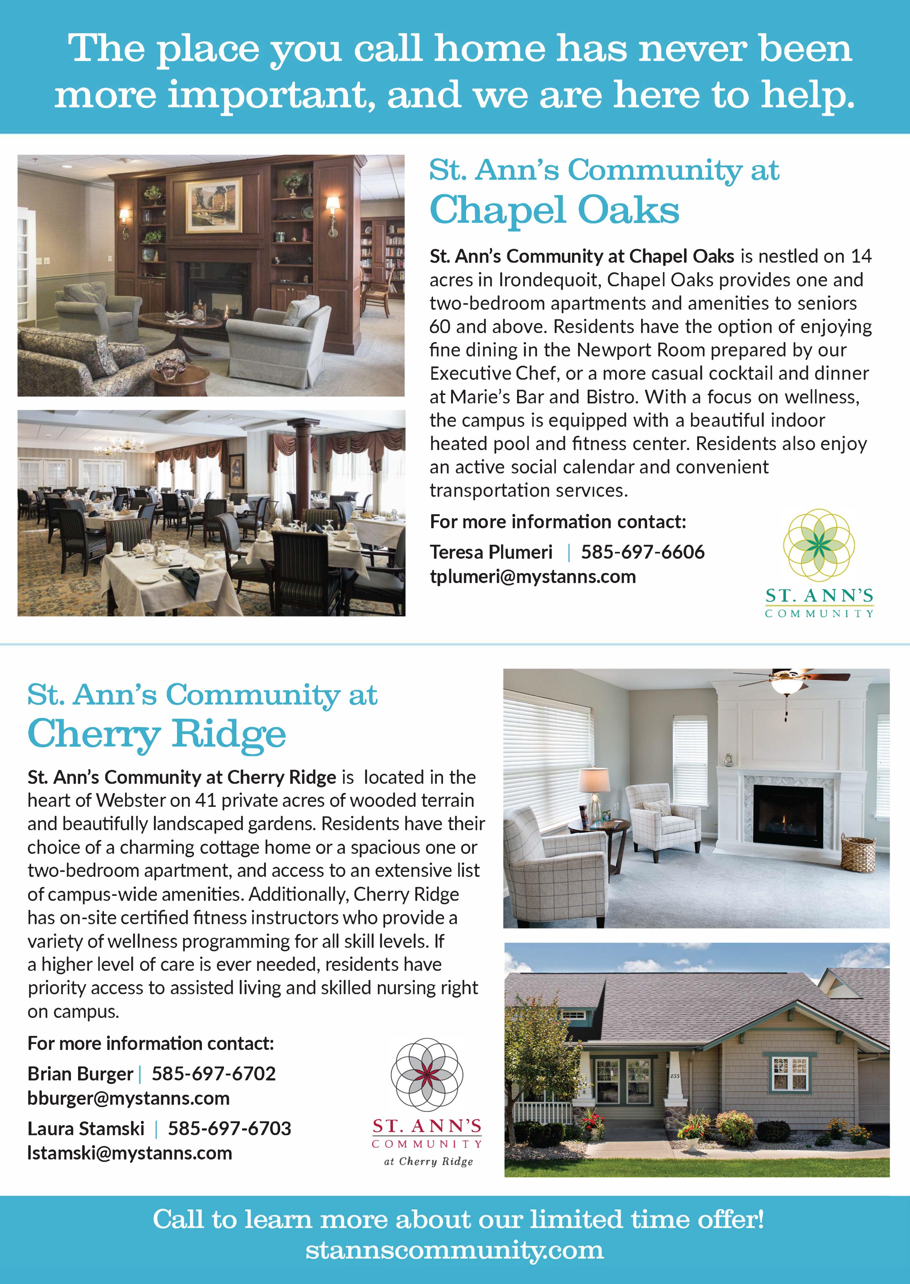 Brian Burger is a marketing representative for St. Ann’s Community at Cherry Ridge in Webster. Contact him at bburger@mystanns.com or 585-697-6702, or visit www.stannscommunity.com.