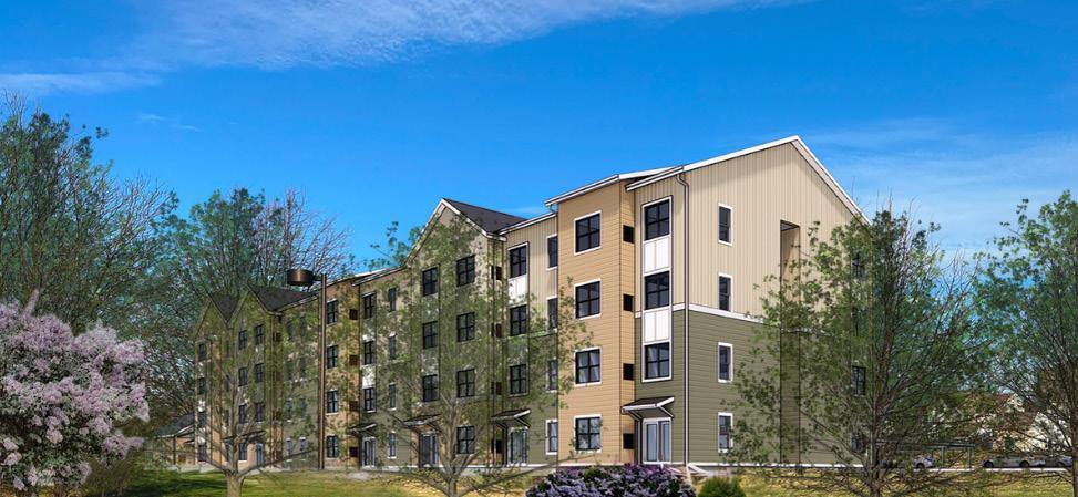 The four-story structure, which is adjacent to a large pond with fountains, will be surrounded by grassy lawns, trees, walking paths and a large outdoor patio with shaded dining areas and outdoor fire pits. Other amenities include a 40-vehicle carport, a versatile community room, an onsite exercise facility, a nearby on-campus deli, and access to salon services.