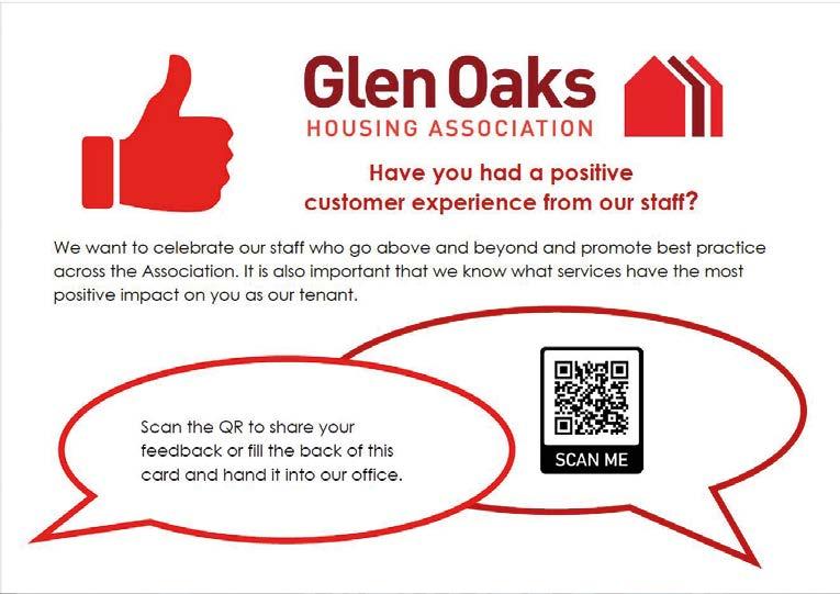 You can visit their website to see our performance against the charter and compare us to other landlords. https://www.housingregulator. gov.scot/landlord-performance/ landlords/glen-oaks-housingassociation-ltd/