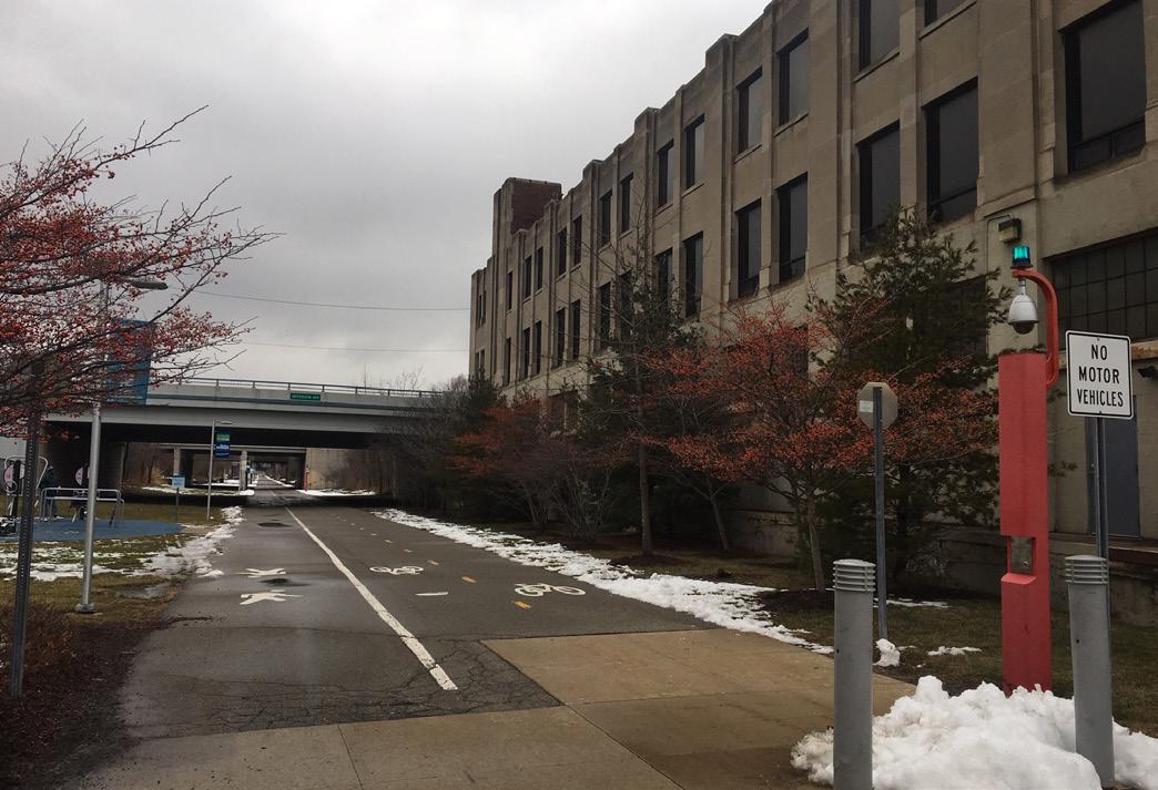 Derelict path of infrastructure has been regenerated as a greenway for pedestrians and bikers. The first portion opened in 2009, and subsequent parts has been developed respectively in 2013 and 2016. Now, 1.5 mile-long Dequindre Cut greenway encompasses three major neighborhoods east of the downtown, Eastern Market, Lafayette Park, and the Eastern Riverfront.