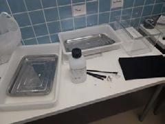 A continuación, ya en el laboratorio, se llevó a cabo un montaje mediante el cual se pretendía imitar el modo tradicional de realizar el tratamiento, tal y como se muestra en la figura a continuación (se utilizó alcohol etílico a concentraciones del 30%, 50%, 70% y 85%.