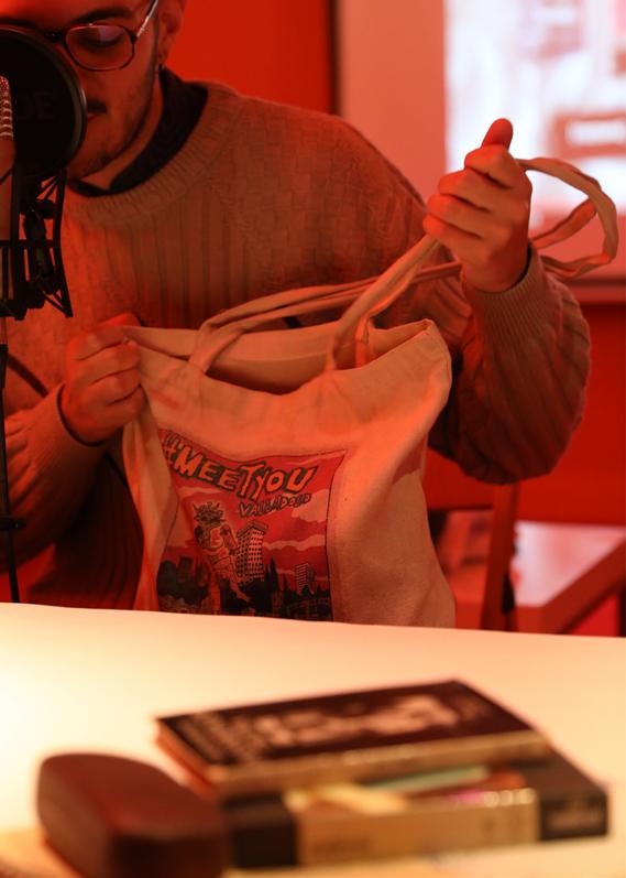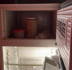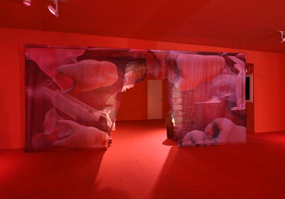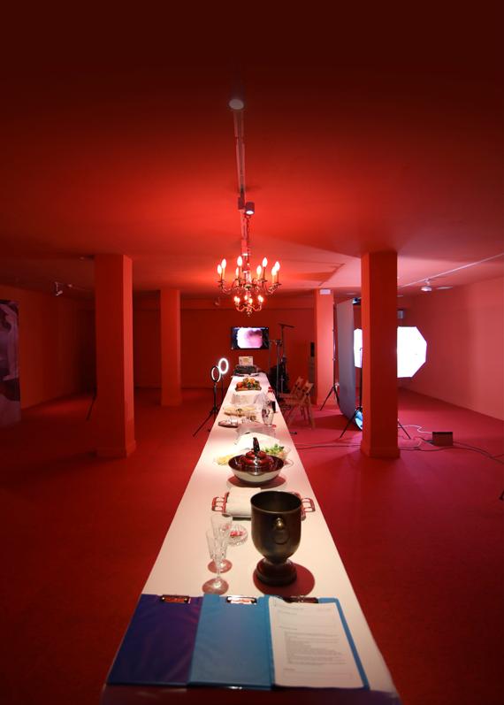 Tras pasar el umbral bucal, empezábamos a escuchar sonidos relacionados con la manducación y nos encontrábamos en una cavidad de tonos rojizos y anaranjados donde dominaba una larga mesa encabezada en cada extremo por dos pantallas que dialogaban retransmitiendo vídeocreaciones de Mukbang y ASMR. La mesa blanca acogía bodegones, testimonios de los materiales usados en los vídeos o creaciones espontáneas surgidas durante las actividades. Desde una esquina, una voz nos llamaba rezando «Ábreme. Ábreme. Ábreme…» y penetrábamos en un cubículo rojo llamado La cabina dura, en el centro de la cual dominaba una nevera que cada semana escondía una instalación nueva en su interior.