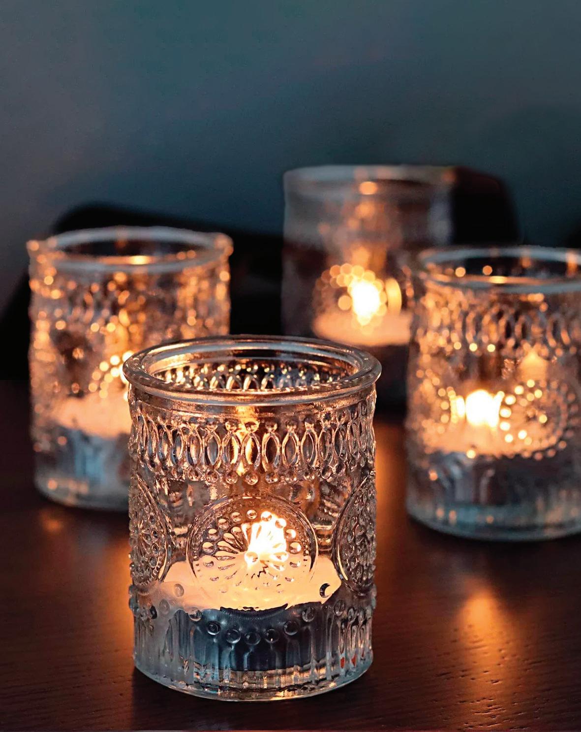 Nothing makes a table feel more inviting than candlelight. Pretty glass votive holders deepen the glow, pull the table together visually, and protect surfaces at the same time. Diebolt’s at Gilham House Antiques has a beautiful selection at very reasonable prices.