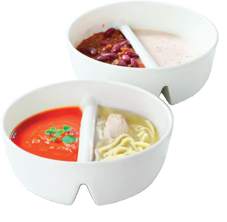 Ideal for a soup party, this divided bowl gives each guest two tastes in one place, saves you from washing every soup/cereal bowl you own, and works just as nicely for chips and salsa in front of the telly. Available on Amazon.