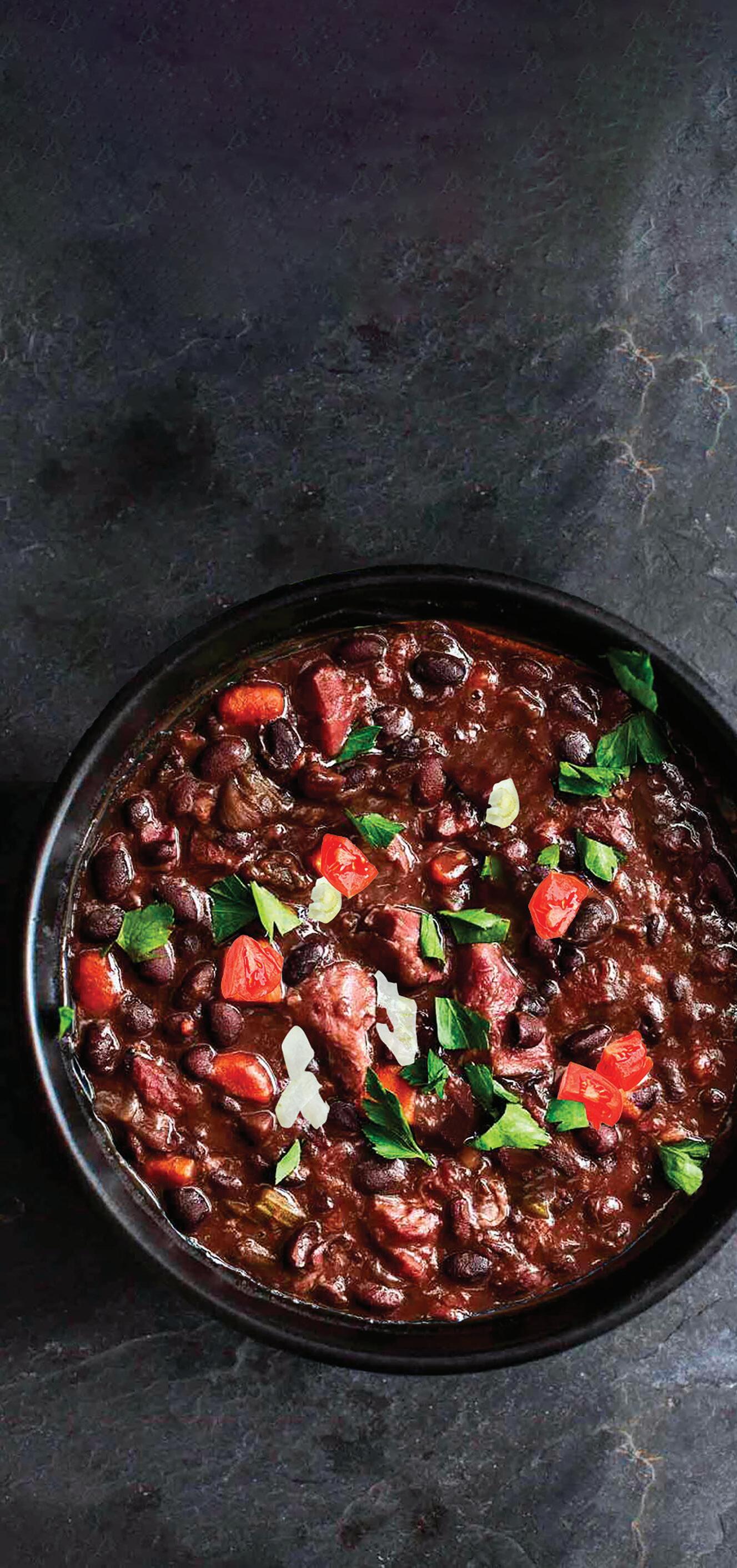If you’re inviting a smaller group, this is an opportunity to have fun setting your table (soup bowls on dinner plates, cloth napkins, warehouse club roses in a simple glass vase). For a larger crowd, let go of the idea that everyone needs to sit together. Turn your stove and countertops into a serving station, set out bowls, silverware/napkin roll-ups, soup toppings and bread, and invite people to sit wherever they land. Email me for my favorite soup, stew, and chowder recipes, recommendations for improving canned stock, and my zingy cornbread recipe. For instant recipe gratification, you’ll find Lon Lane’s excellent black bean soup on page 20.
