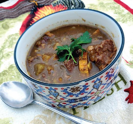 Greens Oshitashi/Ohitashi style (Perfect for any Asian, especially Japanese-themed, meal or as a healthful and quick, standing-in-frontof-the fridge, right-out-of-the container snack.) is Japanese preparation is normally applied to spinach, but works equally well with other greens. It is normally served room temperature to cool, and in cute little individual servings (see photo). In a bowl large enough to hold the cooked greens, combine ½ teaspoon hondashi (see In the Pantry), ½ teaspoon mirin, 1 ½ teaspoon soy sauce or tamari and a few drops of sesame oil (omit for cleaner avor). Stir the mixture until the hondashi powder is dissolved, then add the blanched chard and continue tossing until the greens are completely dressed. In an ideal world, the greens will marinate for 30 minutes to 24 hours, but I seldom nd myself in an ideal world. To serve—if the greens have given o a substantial amount of liquid (chard won’t give o nearly as much as spinach), gently squeeze the greens, reserving the marinade. Place them in serving bowls, drizzle with just a little bit of the marinade, and garnish with toasted sesame seeds and possibly a sprinkling of bonito akes (optional— see Pantry). is technique of marinating and serving at chilled or room temperature works with many vegetables, so feel free to experiment.