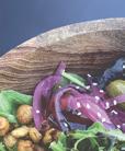 Greens With Lemon and Olive Oil ( e most basic and versatile version—really, it goes with anything.) Peel and slice 2-4 cloves of garlic. Heat a pan large enough to contain the greens, pour in a few tablespoons of extra-virgin olive oil, add the garlic, and cook brie y until the garlic begins to color around the edges. Add a small (or large, depending on your preference) pinch of crushed red pepper akes (Aleppo pepper is delicious here) and toast brie y. Drop in all of the blanched greens and stems at once, sprinkle lightly with salt, and stir, tossing occasionally until the greens are heated through. To serve, o the heat add a squeeze of fresh lemon juice and a drizzle of evoo (good olive oil always has more avor when it isn’t subjected to heat). For a more lling variation, top the greens with seasoned, crunchy toasted breadcrumbs or a sprinkling of grated cheese. e addition of chopped charred scallions is delicious, but begins taking the recipe away from simplicity and freshness.