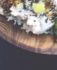 A fish in the mackerel family, bonito is used in combination with kombu (dried kelp) to make dashi (see hondashi above). Bonito are steam-processed, dried to wood-like hardness, then shaved into flakes of different sizes. The flakes are sold in cellophane packages of various sizes (single use to multiple) and are highly perishable when exposed to air and moisture. Store in an airtight container and use as soon as possible after opening. For a neat and tasty dinner party trick, try sprinkling them over a hot dish right before you serve it—it’s really cool (and slightly disturbing) the way they wave at you as if in greeting or celebration.