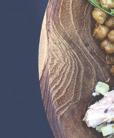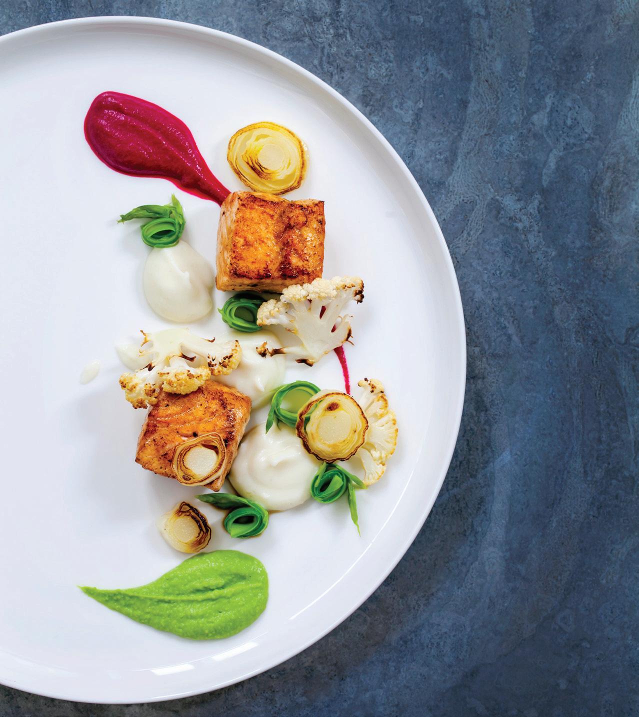 The menu changes monthly and begins with a variety of sharable starters for the table. There are also two boards—a bread-and-butter board and the butcher board. We ordered both and found the breadand-butter board redundant, as most of the small plates came with generous baskets of a variety of sliced Ibis Bakery bread. In fact, the only leftovers we took home were three full boxes of sliced bread.