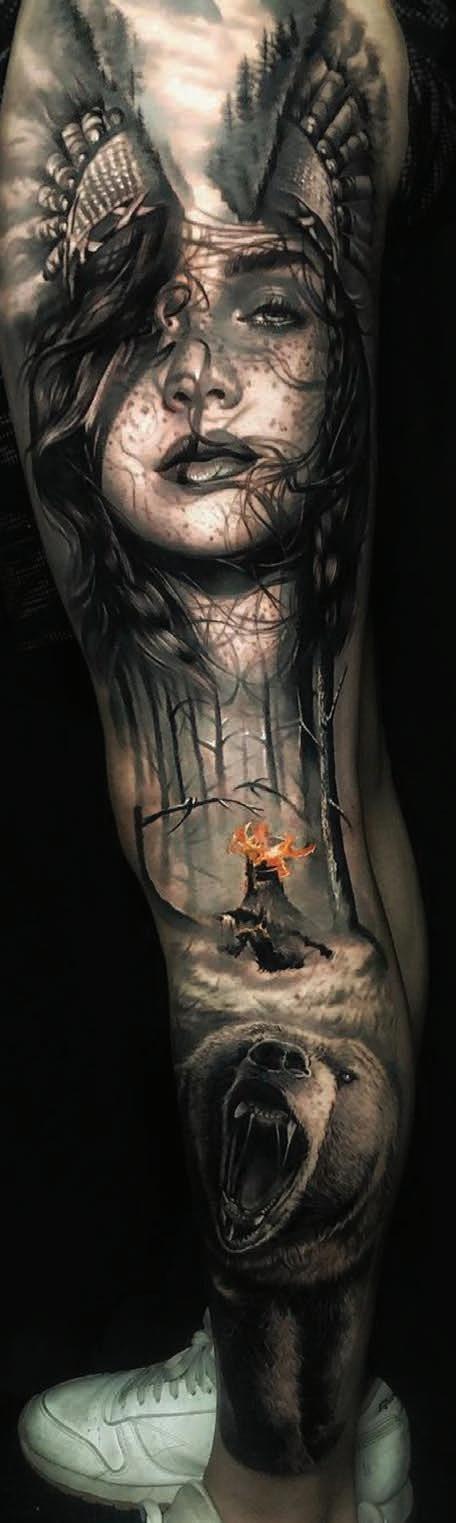 What are some of your favorite subject matters to work with? I always end up doing compositions with beautiful faces and nature. I love to blend these elements perfectly and create tattoos that look beautiful.