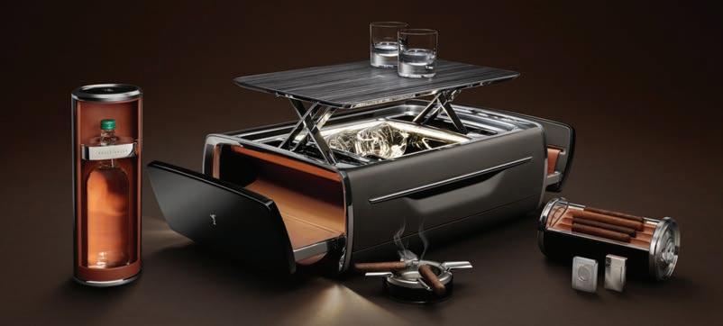 Rolls-Royce has combined its legendary engineering expertise and dedication to creating the ultimate entertaining experience to design a cellarette worthy of celebrating any momentous occasion. The chest’s exterior is handcrafted in rich, Havana leather and the hand-blown crystal glasses inside are illuminated by interior lighting. The chest also includes a humidor crafted from Spanish Cedar complete with a hygrometer gauge, and the lighter and S.T. Dupont cigar cutter are plated in precious metal. A nonsmoking version is also offered. Rolls-roycemotorcars.com