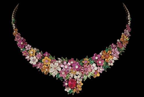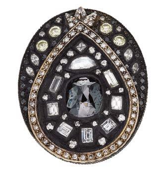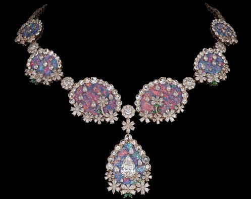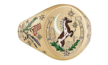 Combining elements from ancient Rome, Renaissance art and early Christianity, the materials used to craft the Jubilee Ring include diamonds, tsavorites, Paraiba tourmalines, white quartz, emeralds, sapphires and Tahitian pearls, impactite Libyan glass, enamel and Egyptian blue and walnut ink pigments.