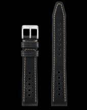 Above: The premium MONZA 557 watch strap, crafted from Italian vegetable tanned pull-up leather, reveals subtle nuances with wear. Its double perforation inspired by classic derbies and its raw silk saddle-style stitching create a refined, distinctly gentleman look. 20 and 22mm, Full grained lamb lining. Satined stainless steel buckle. 2mm taper. Black, brown, navy, burgundy and honey.