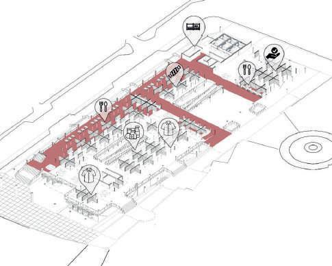 Considerando esta situación como una oportunidad para que el mercado se exprese como espacio de encuentro y congregación, e integrarlo a la atmósfera de plaza del lugar, se decide cambiarlo para repotenciar el uso actual, y añadir un nuevo uso. Surgen así 3 estrategias para lograrlo.