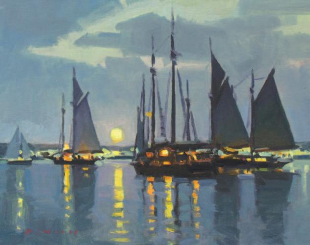 Ken DeWaard, Late Night Schooners, Oil, 12 x 16”