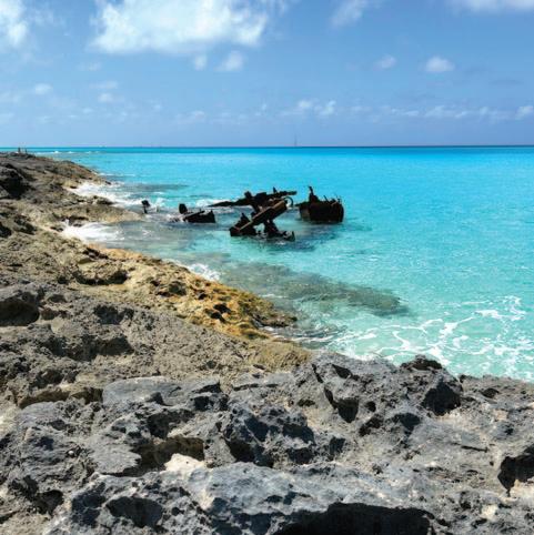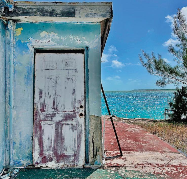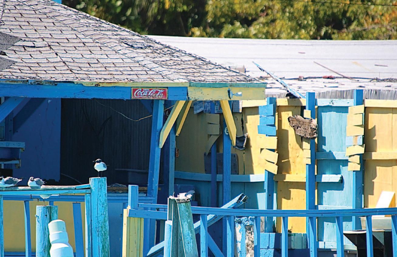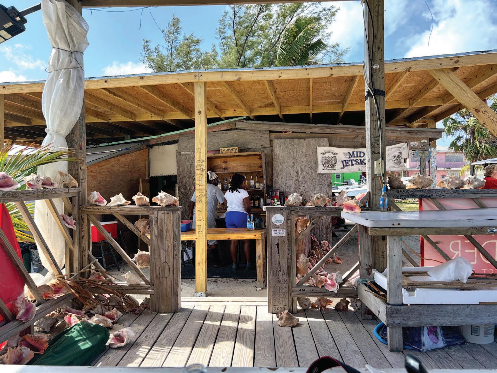 white horseshoe-shaped craft center, where vendors were opening their small shops, by the gas station, which was little more than a fuel pump set in a dirt, crescent-shaped pull-off, behind a chain-link gate. The storefronts were indistinguishable from one another, looking for the most part unoccupied, never mind open for business. Conch stands and bakeries, shops selling Bimini bags and clothing, liquor stores, and barbecue kettles dotted the road until we reached the north end.