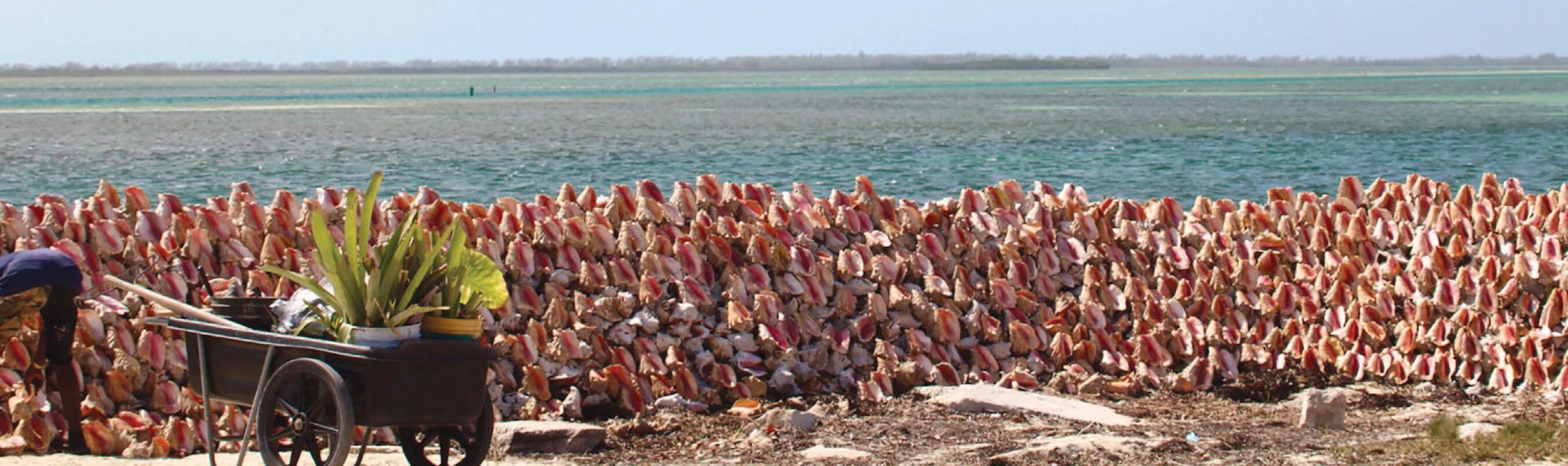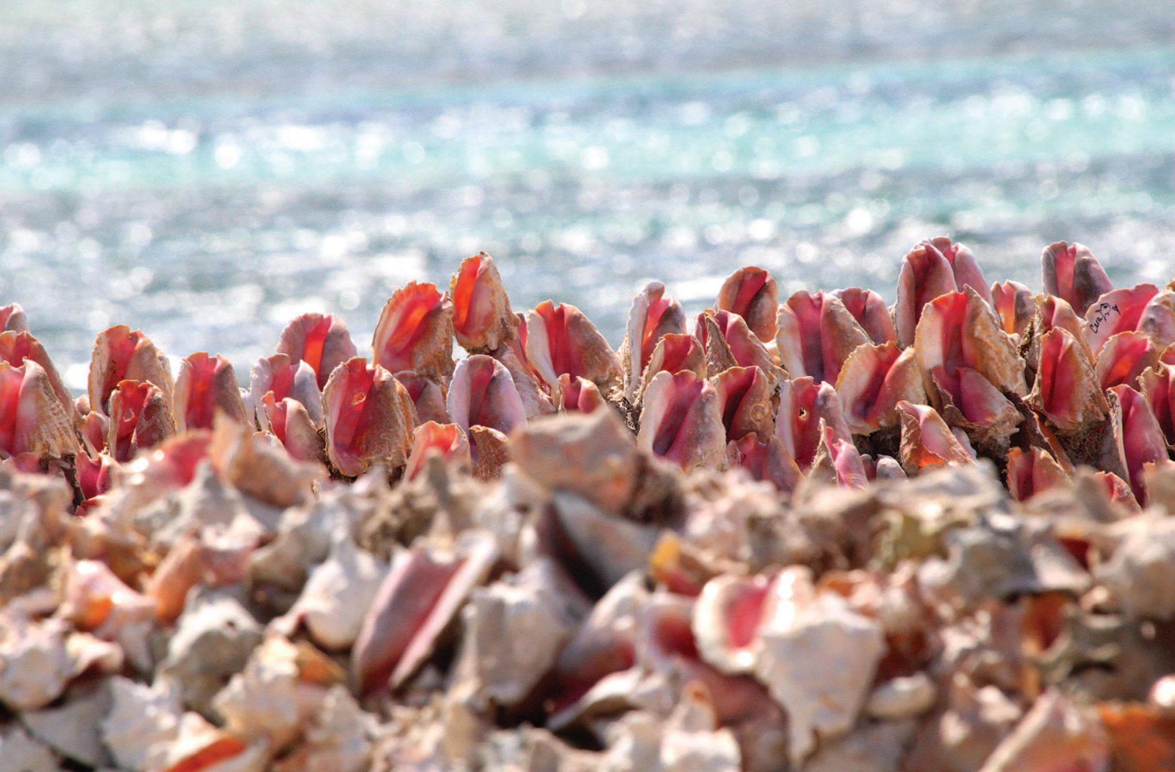 Toourists bought newly vacant snail house from the shucker and, with sharpies avai able fr r, , scrawled their name or message on them. Some conchs were add to the wall, some were placed around ng “is es ilr a ded toanearpulpsoitdoesn’tchewliker
