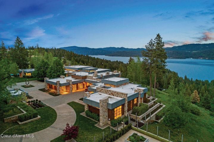 ARCHITECTURAL BEAUTY with fabulous Lake CdA Views, serene 3.58-acre treed setting. Includes 900 sq ft private guest quarters w/kitchen, laundry & deck. Experience luxurious living with breathtaking lake views and nearby amenities.