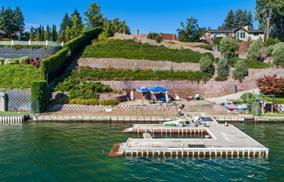 5 beds, 4.5 baths, 4,682 sf, 285' deep waterfront + 3 boat/2 slip dock. 180 lake views. Lawn to water's edge, 2 sandy beach areas. $2.5m 7285HENRYPOINT285WF.COM