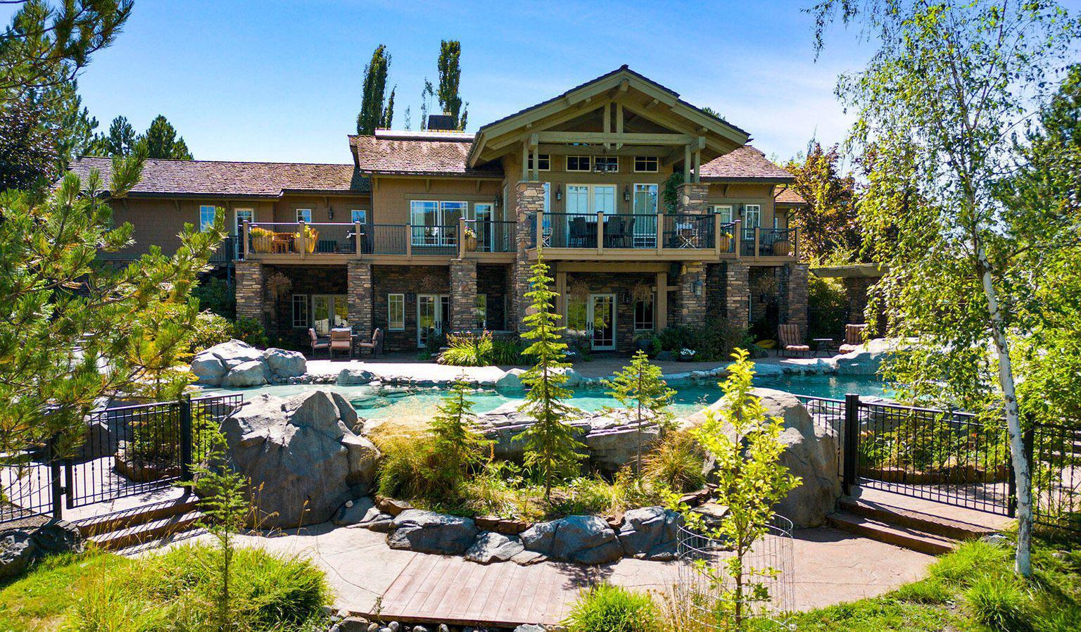 Custom home on Hayden Lake with shop & guest house, magnificently alive with elaborate craftsmanship and Old World charm.