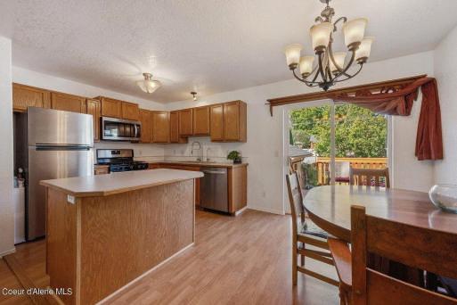 2304 E. GRANDVIEW DR. CDA | 4 BD | 3.5 BA | 3,751 SQFT Nestled between Hayden Lake & Dalton Gardens. Grand views from the charming front decks and expansive picture windows are breathtaking. Immaculately maintained with numerous upgrades, this home is move-in ready. The spacious master suite features a large bath and walk-in closet, providing a private oasis with city views. The large chef’s kitchen, equipped with all-new SS appliances and center island, adjoins the formal dining area, perfect for entertaining. The lower-level game room, with a full bath and separate entrance, is ideal for multi-generational living. Large bedrooms, an office, abundant storage, and an oversized 3-car garage with a 10-foot door could accommodate small RV or boat parking . A beautiful back deck is perfect for barbecues and outdoor gatherings. 208-660-7246 | MLS#24-6301