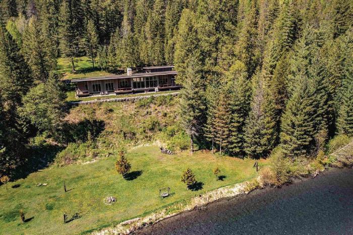 Experience North Idaho luxury beneath the iconic Cathedral Rock on this extraordinary 34.87-acre estate overlooking the Pend Oreille River and surrounding mountain vistas. This one-of-a-kind property spans 5 separate lots and features a stunning 3,598 Sq. Ft. main residence with 3 bedrooms, 3 baths, and upscale finishes throughout. Enjoy hydronic heating, a Montana Stone fireplace, and an open-concept layout with soaring ceilings and expansive windows that frame breathtaking views. The chef’s kitchen includes a Sub-Zero fridge, Wolf 5-burner range, waterfall island, European soft-touch cabinetry, and a custom backsplash. The dining area opens to a covered patio perfect for outdoor dining, while the cozy living room offers a wood-burning fireplace and serene ambiance. Upstairs, vaulted Tongue & Groove ceilings crown a spacious family room and personal library. The luxurious primary suite boasts balcony access, a picture-perfect window lounge, walk-in closet, and spa-like ensuite with a garden tub and custom tile shower. A second ensuite offers deck access and its own walk-in closet. Outside, enjoy a unique blend of barn wood and Corten Steel siding, plus exceptional amenities: a whimsical treehouse, 24’x40’ pole barn with loft and power, a teepee with a large deck, and a steel workshop with living quarters, full bath, kitchenette, recording studio, and independent utilities - fed by an artesian well. Just minutes from Sandpoint, Lake Pend Oreille, golf at The Idaho Club, and Schweitzer Mountain skiing, this rare retreat blends privacy, adventure, and refined living in the heart of North Idaho.