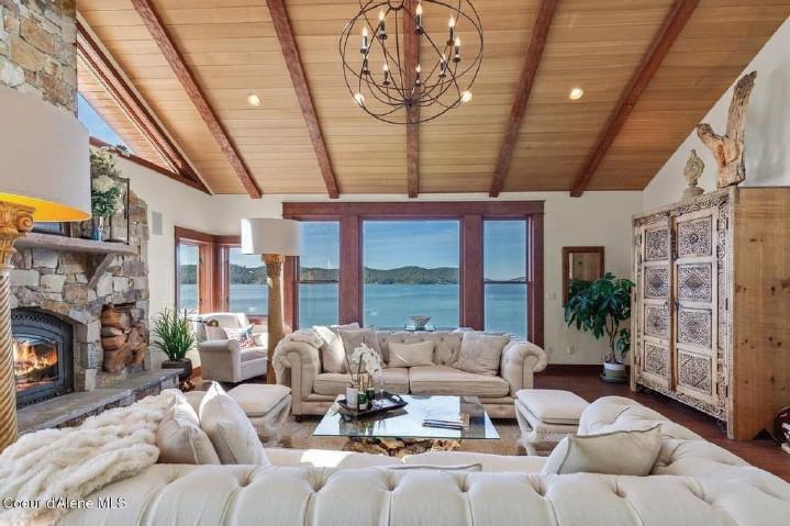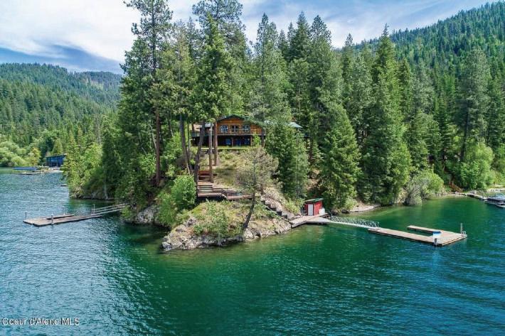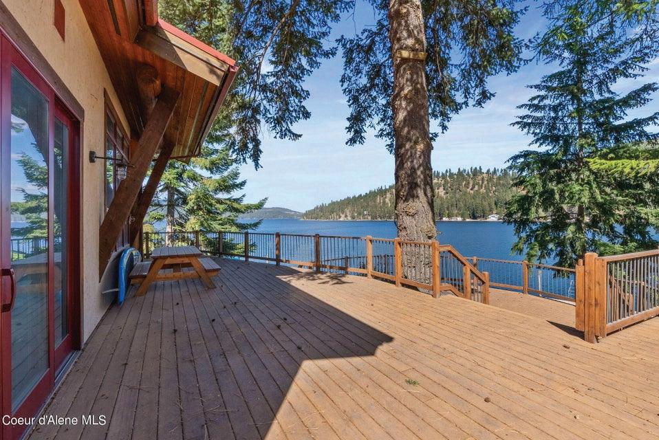 Introducing this exquisite 6,089 Sq. Ft. 6 Bed / 4 Bath waterfront home boasting expansive water views! This residence promises a unique living experience with its open floor plan that seamlessly blends the cooking, dining, and lounging areas. Sliding glass doors off the living room open onto a spacious, newly refinished deck, offering sweeping southwest vistas of the lake. Upstairs features 2 extra large bedrooms/bonus rooms. The main floor master bedroom stands out with its built-in fireplace and covenant ability to walk out to the deck, creating a warm, naturally illuminated retreat. Completing the master suite is the extra large En-suite bath featuring dual vanities, custom shower, Steam Room, and well-appointed walk-in closet. Outside, the yard slopes gently towards a 236’ of private waterfront (taxed as 85’), complete with a rare private peninsula space that hosts a large gazebo and a private dock. Located in south Sandpoint, this property offers the rare advantage of private water frontage and the feel of isolation, while being within walking distance to downtown, local shops, restaurants, and community events. Enjoy the vibrant culture and amenities that define this charming lakeside town such as the Festival at Sandpoint.