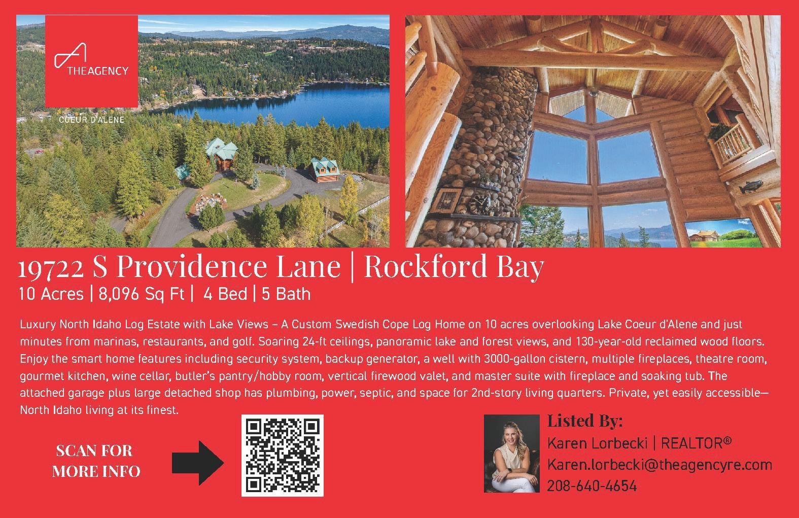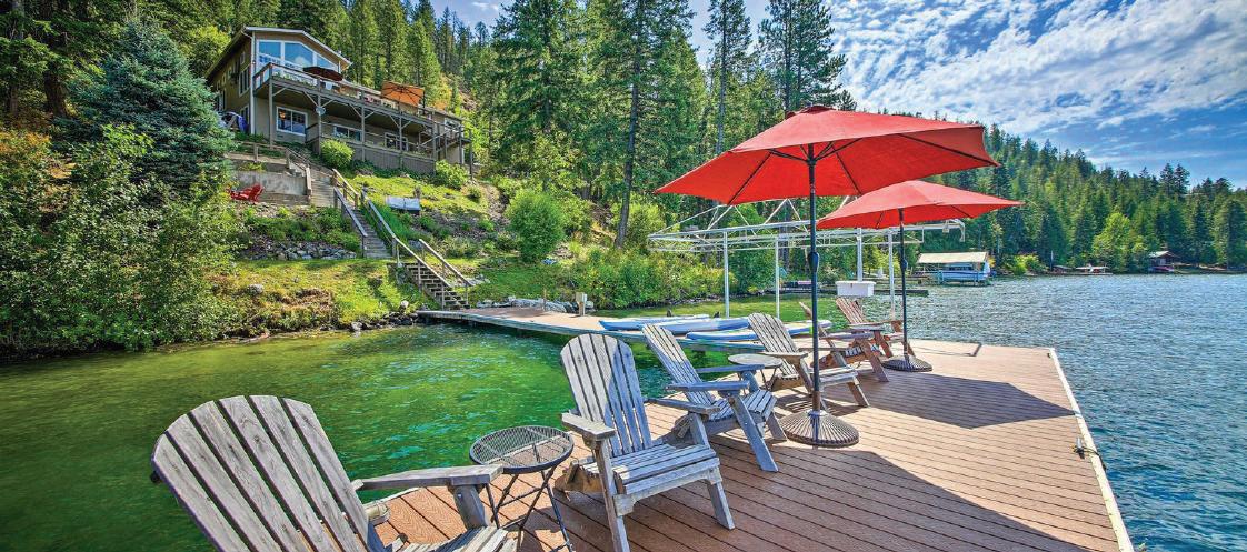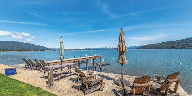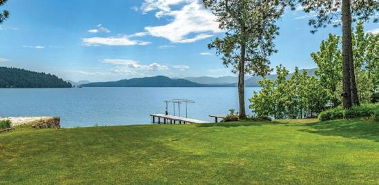 Just 5 minutes from downtown Coeur d’Alene. This spectacular .43-acre lot with 214 ft of shoreline not only offers breathtaking waterfront views, but also the convenience of a private dock. Community water, electricity, natural gas, and effluent lines already in place to the property line. Offered at $1,650,000 LUXURY NORT H ID AHO WA TERFRONT HOME