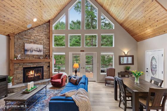 Located across the street from Hayden Lake, this exceptional custom home offers 3 bedrooms and 2 bathrooms on a spacious, wooded 0.27-acre lot— perfect for adding a large shop or accommodating RV/boat parking. This home features vaulted ceilings, exposed wood beams, a wood staircase, & a cozy gas fireplace. The interior is accented by granite countertops, custom cabinetry, high-end newer appliances, and updated baths. Enjoy an open-concept layout that seamlessly flows to the outdoors, with two expansive covered decks ideal for entertaining or simply relaxing. Both front & backyard spaces are fully landscaped, complete with paver pathways and a sitting area. Excellent VRBO potential, this home is just minutes from all the best Hayden Lake has to offer—including the Hayden Lake Country Club, Avondale Golf Club, Honeysuckle Beach & boat launch, shopping, dining, and endless outdoor adventures. Offered at $789,000