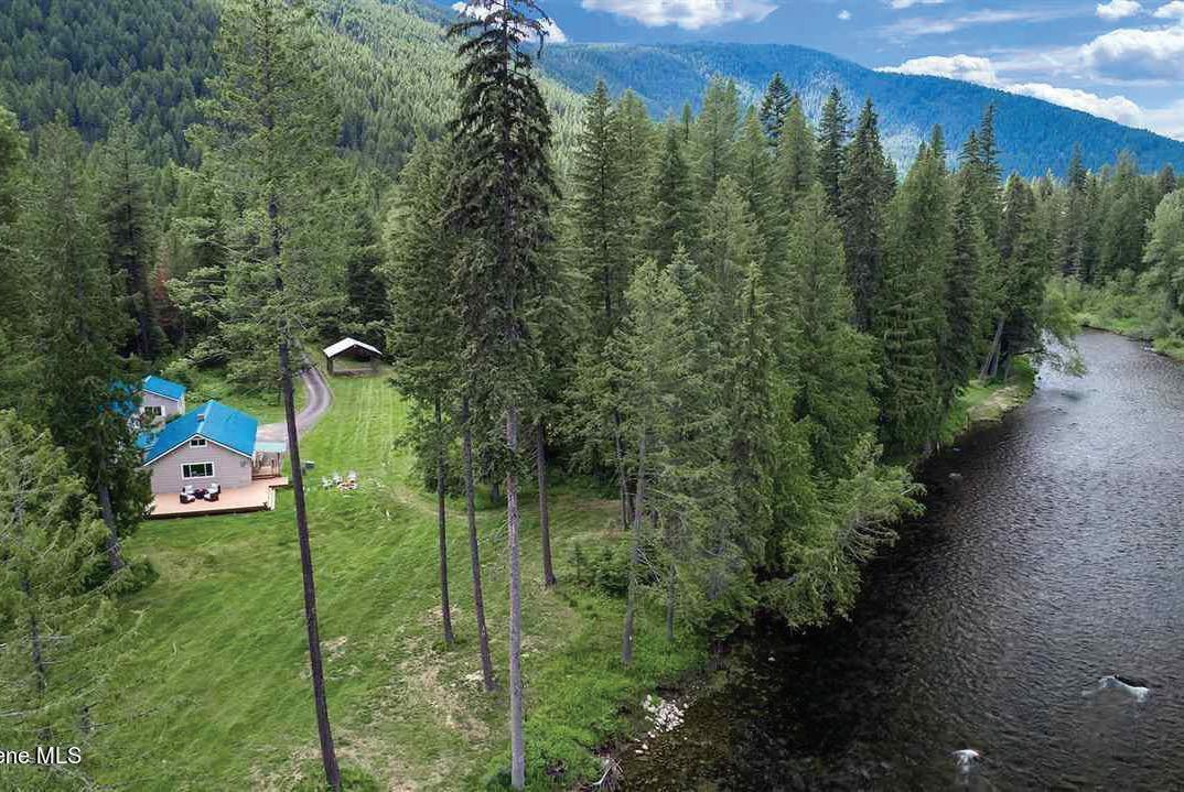 Experience North Idaho luxury beneath the iconic Cathedral Rock on this extraordinary 34.87-acre estate overlooking the Pend Oreille River and surrounding mountain vistas. This one-of-a-kind property spans 5 separate lots and features a stunning 3,598 Sq. Ft. main residence with 3 bedrooms, 3 baths, and upscale finishes throughout. Enjoy hydronic heating, a Montana Stone fireplace, and an open-concept layout with soaring ceilings and expansive windows that frame breathtaking views. The chef’s kitchen includes a Sub-Zero fridge, Wolf 5-burner range, waterfall island, European soft-touch cabinetry, and a custom backsplash. The dining area opens to a covered patio perfect for outdoor dining, while the cozy living room offers a wood-burning fireplace and serene ambiance. Upstairs, vaulted Tongue & Groove ceilings crown a spacious family room and personal library. The luxurious primary suite boasts balcony access, a picture-perfect window lounge, walk-in closet, and spa-like ensuite with a garden tub and custom tile shower. A second ensuite offers deck access and its own walk-in closet. Outside, enjoy a unique blend of barn wood and Corten Steel siding, plus exceptional amenities: a whimsical treehouse, 24’x40’ pole barn with loft and power, a teepee with a large deck, and a steel workshop with living quarters, full bath, kitchenette, recording studio, and independent utilities - fed by an artesian well. Just minutes from Sandpoint, Lake Pend Oreille, golf at The Idaho Club, and Schweitzer Mountain skiing, this rare retreat blends privacy, adventure, and refined living in the heart of North Idaho.